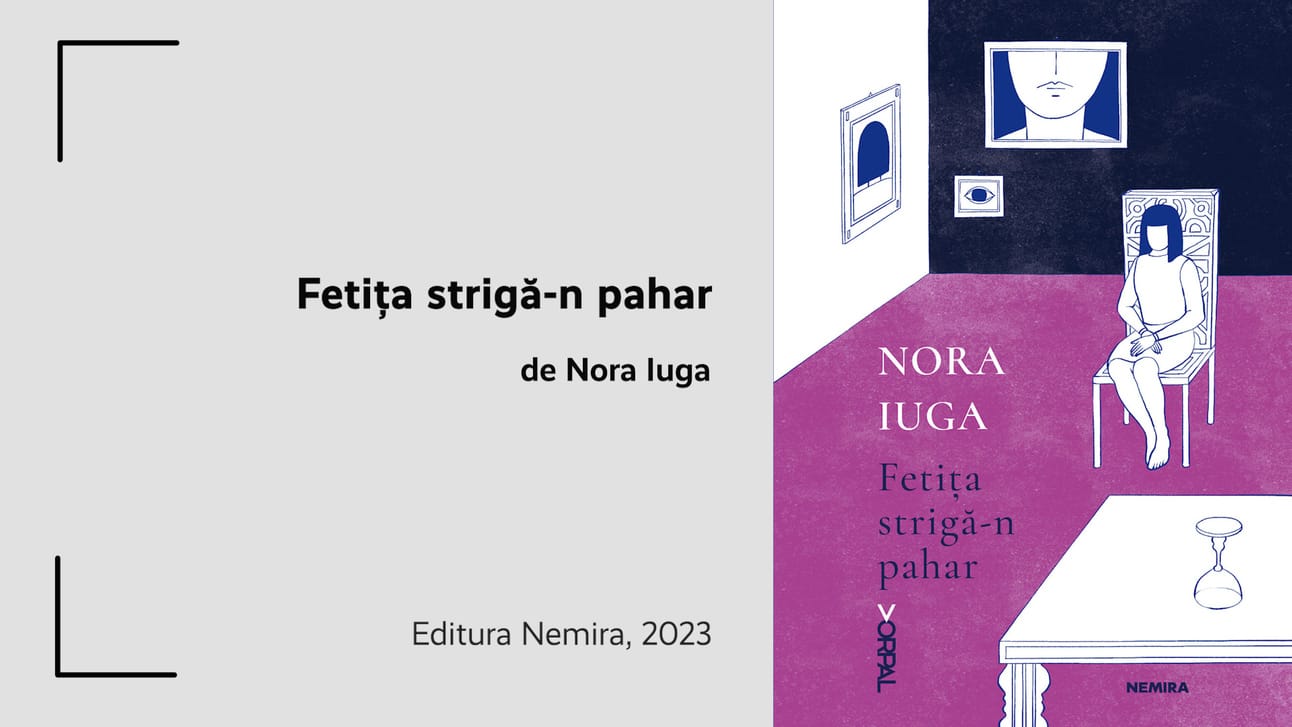 Fetița strigă-n pahar este o carte de poezie. Autoarea ei este, așadar, o poetă. Numele acestei poete este Nora Iuga. Nora Iuga are 92 de ani și jumătate. Aceasta este cea mai recentă dintre cărțile ei.
