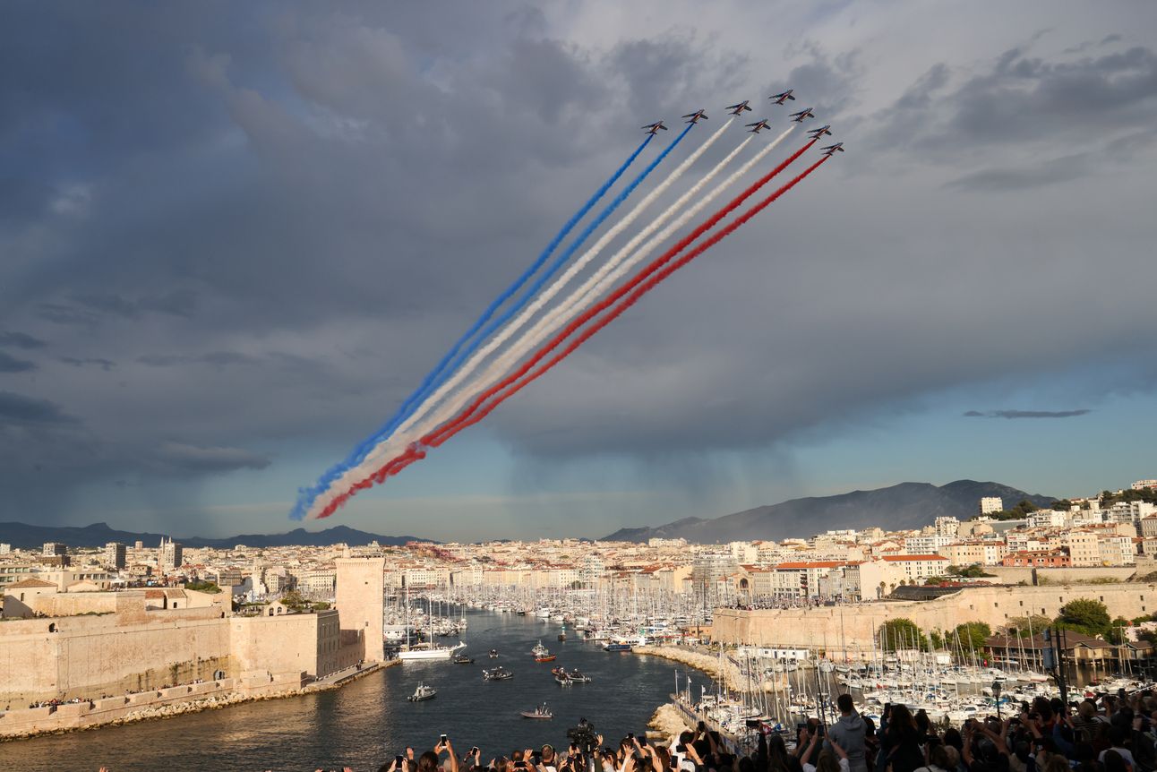 Spectacol aviatic cu ocazia sosirii torței olimpice în Franța, Vechiul Port din Marsilia. Mediafax Foto