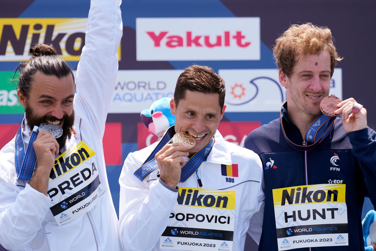 Medalii la Mondiale. N-a fost să fie pentru David Popovici, ci pentru Constantin Popovici şi Cătălin Preda, care au luat la Mondialele din Japonia aur și argint la sărituri în apă de la mare înălțime. Popovici între timp și-a câștigat noi fani prin atitudine: „Poate fi plictisitor să câștigi pe bandă rulantă. E important să ai și momente din astea.”