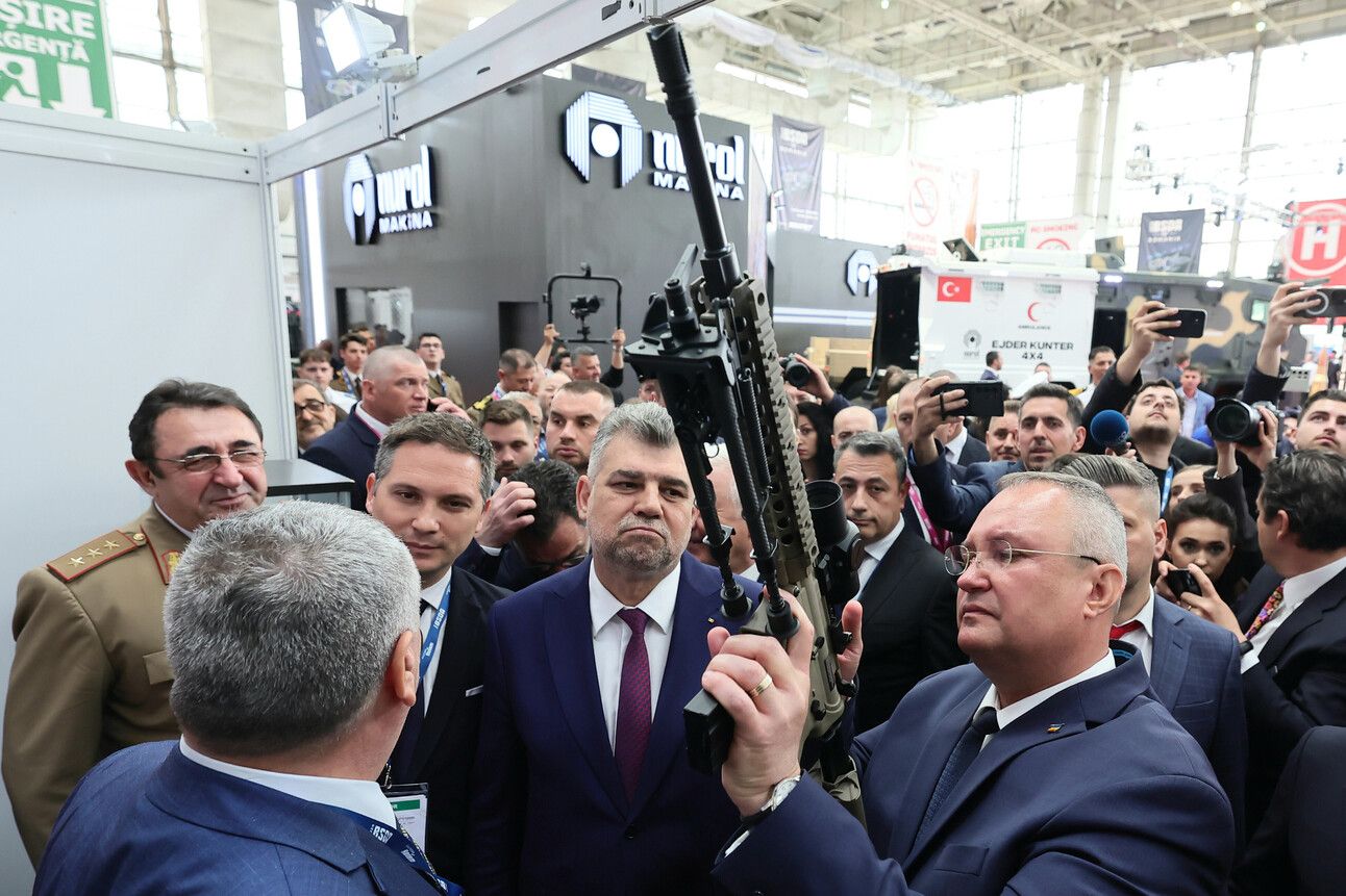 Premierul Marcel Ciolacu și Nicolae Ciucă, președintele Senatului, au participat la deschiderea expoziției internationale Black Sea Defense and Aerospace. Foto: Agerpres