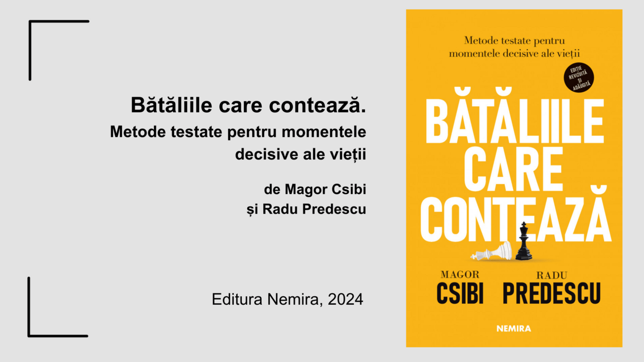 „Bătăliile care contează”, a lui Magor Csibi și Radu Predescu, e prezentată ca o carte despre leadershipul organizațional și militar și valorile comune după care acestea se ghidează. Eu cred că nu e numai despre asta și nici măcar nu e doar o carte pentru cei pasionați de leadership.