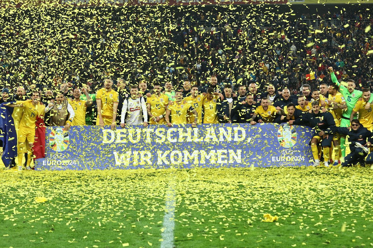 Succes al naționalei de fotbal a României. A reușit nu doar să se califice pentru prima dată din 2016 la un campionat european, ci și să termine grupa din preliminarii pe primul loc. În ultima partidă, a învins marți Elveția cu 1 la 0, pe Arena Națională din București. Foto: Agerpres/Ionuț Anghel