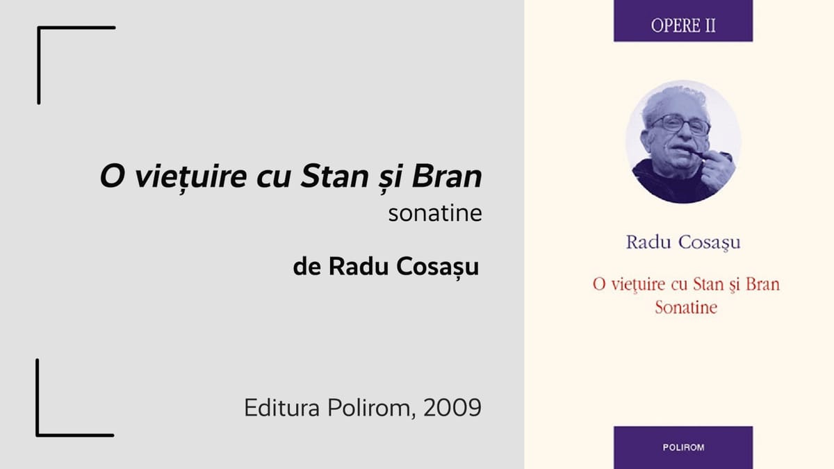 Recomand cartea „O viețuire cu Stan și Bran”. O găsiți în volumul II de Opere, publicat la Polirom în 2009. Este o carte despre filmele de cinema, dar este și o autobiografie intelectuală cosașiană (una dintre multele pe care le-a scris).